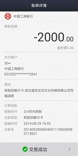 有位客户慕名来到无忧代笔网,要求写份电视专题片脚本。他按代笔服务流程提交了订单、准备了大量的资料,还未等在线写手老师答应接稿他就迅速汇了2000元定金。可当写手反复熟悉材料后,没有一件值得参考的。让他尽量提供,他却说再也找不到任何材料了。无奈,只有全额退款(如实景退款截图)。当收到公司财务退还的现金时,他说:“没想到你们还真能退款,相反这让我认识了你们。我准备好资料还会来的!”