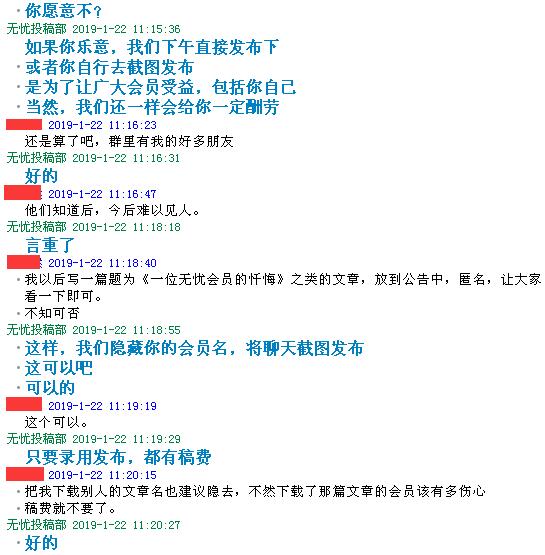 应原作者要求,此处不留下个人姓名和联系方式。征得个人同意,现将该作者与编辑老师的交流原始截图一并发布,希望给广大投稿会员以警示。